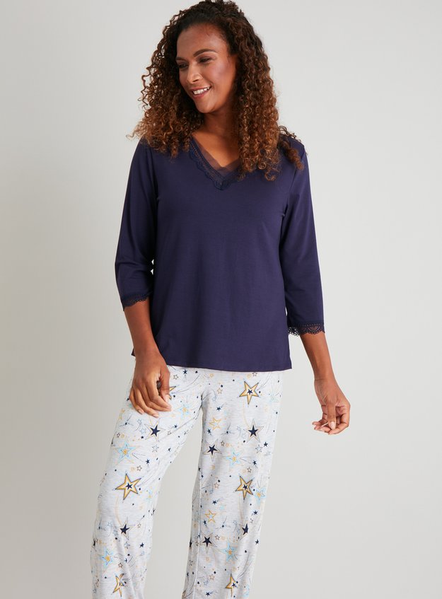 Womens Navy Lace Trim Star Print Pyjamas Tu Clothing from media.4rgos.it Next day delivery and free returns available. Supersoft checks, dreamy florals, cute cartoon characters, cheeky slogans and more. 4 out of 5 stars. Most relevant most popular alphabetical price: Crafted in pure cotton to a.